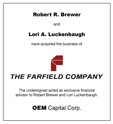 When an opportunity arose for the management to acquire the business of The Farfield Company, OEM Capital Corp. was retained to negotiate the transaction and arrange appropriate financing. Funding was provided by management with the support of Mid-Penn Bank in conjunction with the Small Business Administration. American Global arranged a bonding line to facilitate new contract acquisition.